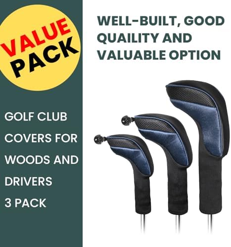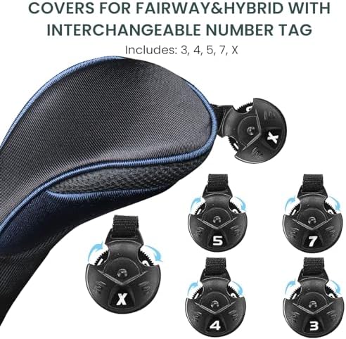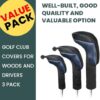FINGER TEN Golf Club Head Covers for Woods Driver Fairway Hybrid Value 3/5 Pack, Long Headcover Interchangeable Accessories for Ultimate Club Protection (Blue&Black(1D+1F+1H)) : Sports & Outdoors